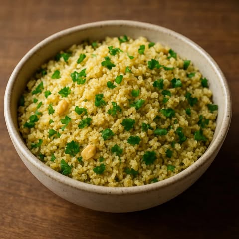 Farofa aromática de alho e salsa, saborosa e perfumada, ideal para dar personalidade e sabor