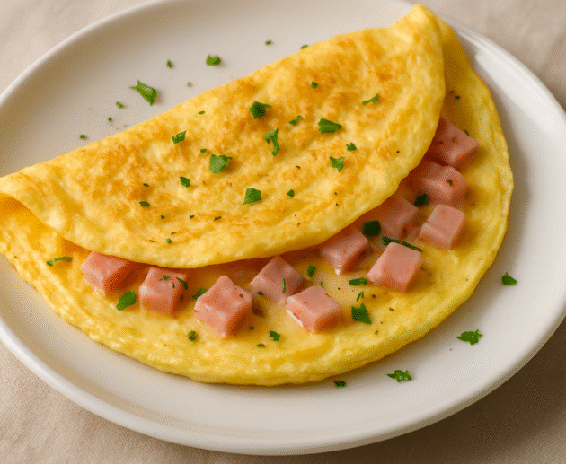 Pronta em 10 minutos e cheia de sabor! Esta omelete fofinha de queijo e presunto